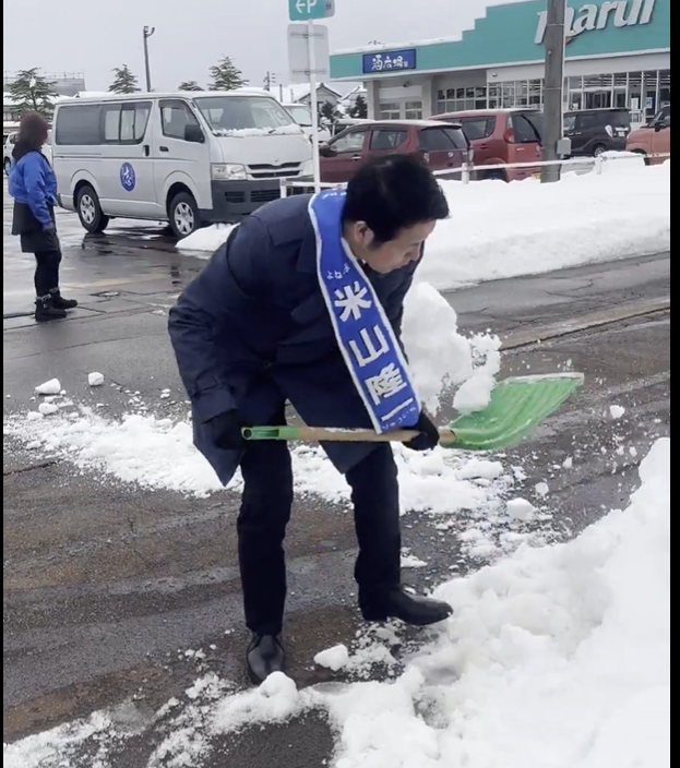 SNSを中心に、中道改革連合の米山隆一候補の行いが物議を醸しておりますが、賛否両論ありましたね。除雪隊が路肩に積み上げた雪を、選挙カーを入れるスペースに確保するために、候補自らがスコップをふるって道路にぶちまけた───それが道交法違犯だとか、いやいや雪国では当たり前の行為だとか、いろいろ言われているわけです。